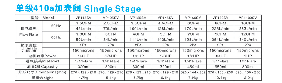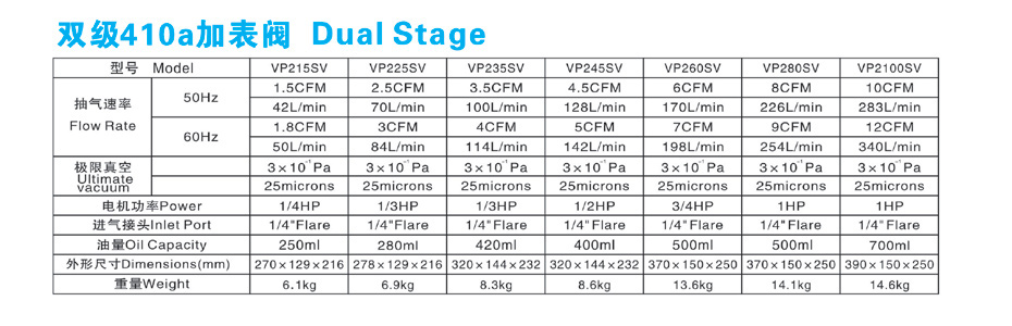 产品名称:单级/双级410a加表阀真空泵